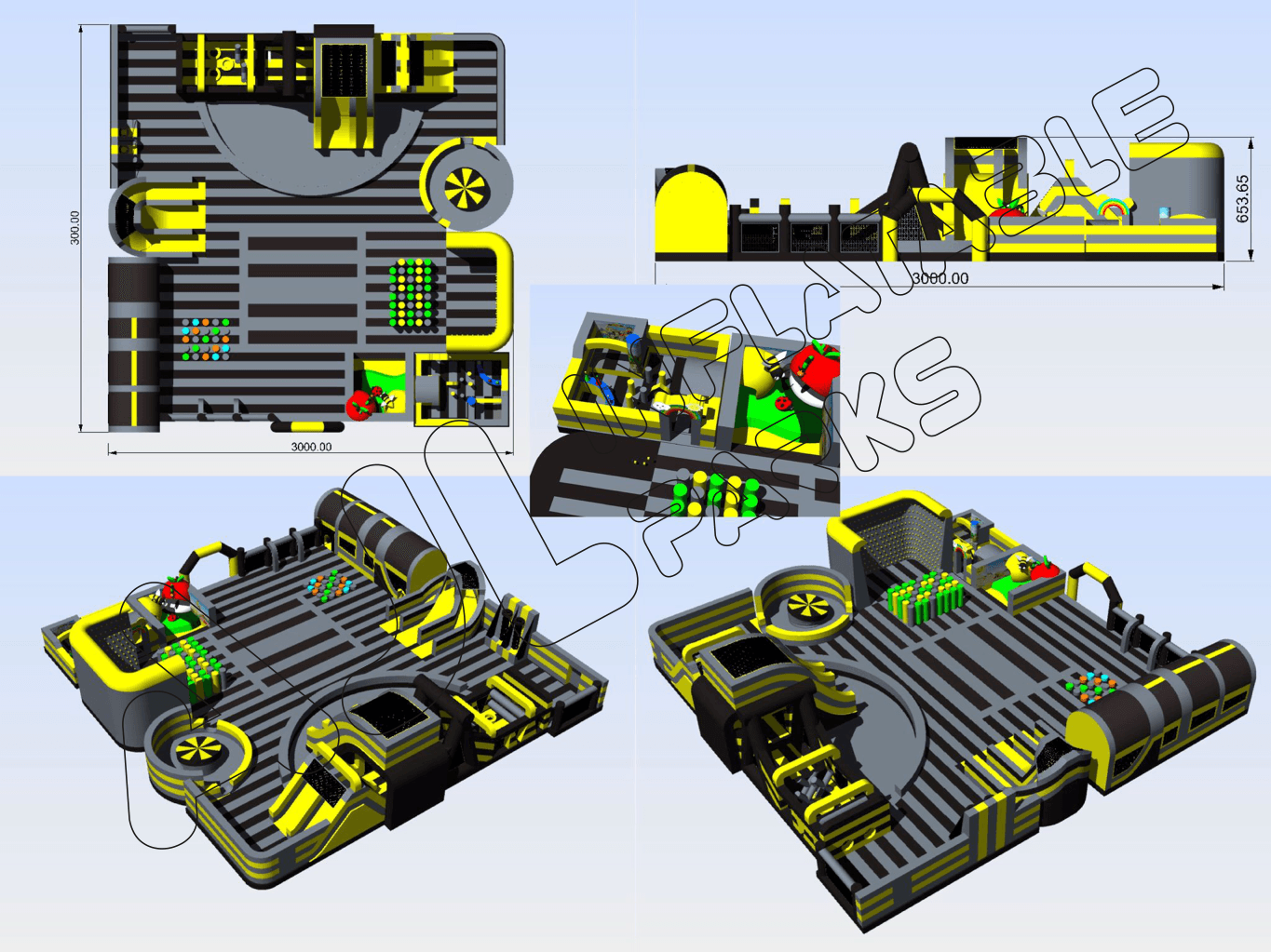 Click here to learn more about our inflatable park manufacturing